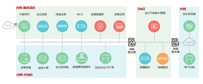 包括視頻會議系統(tǒng)、電話會議系統(tǒng)、電子白板、會議平板終端、電子白板和會議平板集中管理系統(tǒng)、會管系統(tǒng)、統(tǒng)一監(jiān)控平臺、系統(tǒng)對接定制開發(fā)服務(wù)等,提供端到端的高清視頻會議解決方案。