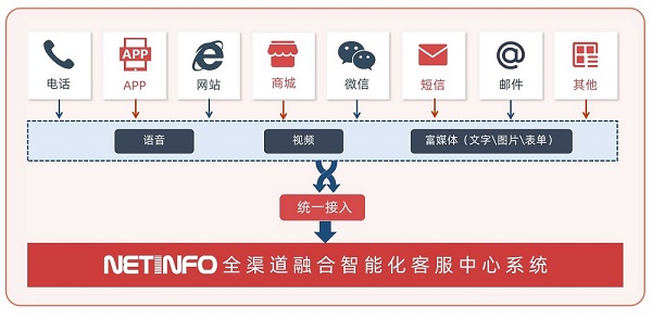 (1)全渠道客服平臺:支持電話、短信、郵件、微信、APP、網站、網上交易等多渠道統一接入。