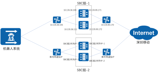 將SBC配置于內外網銜接處(或DMZ區),采用I-SBC方式,外側與運營商提供的SIP端地址和端口進行對接;同時SBC另一側與機器人所在內部話務平臺進行SIP對接,在SBC內部進行內外側進行協議轉換,完成內外部的連接,通過運營商的呼叫規則進行外呼。
