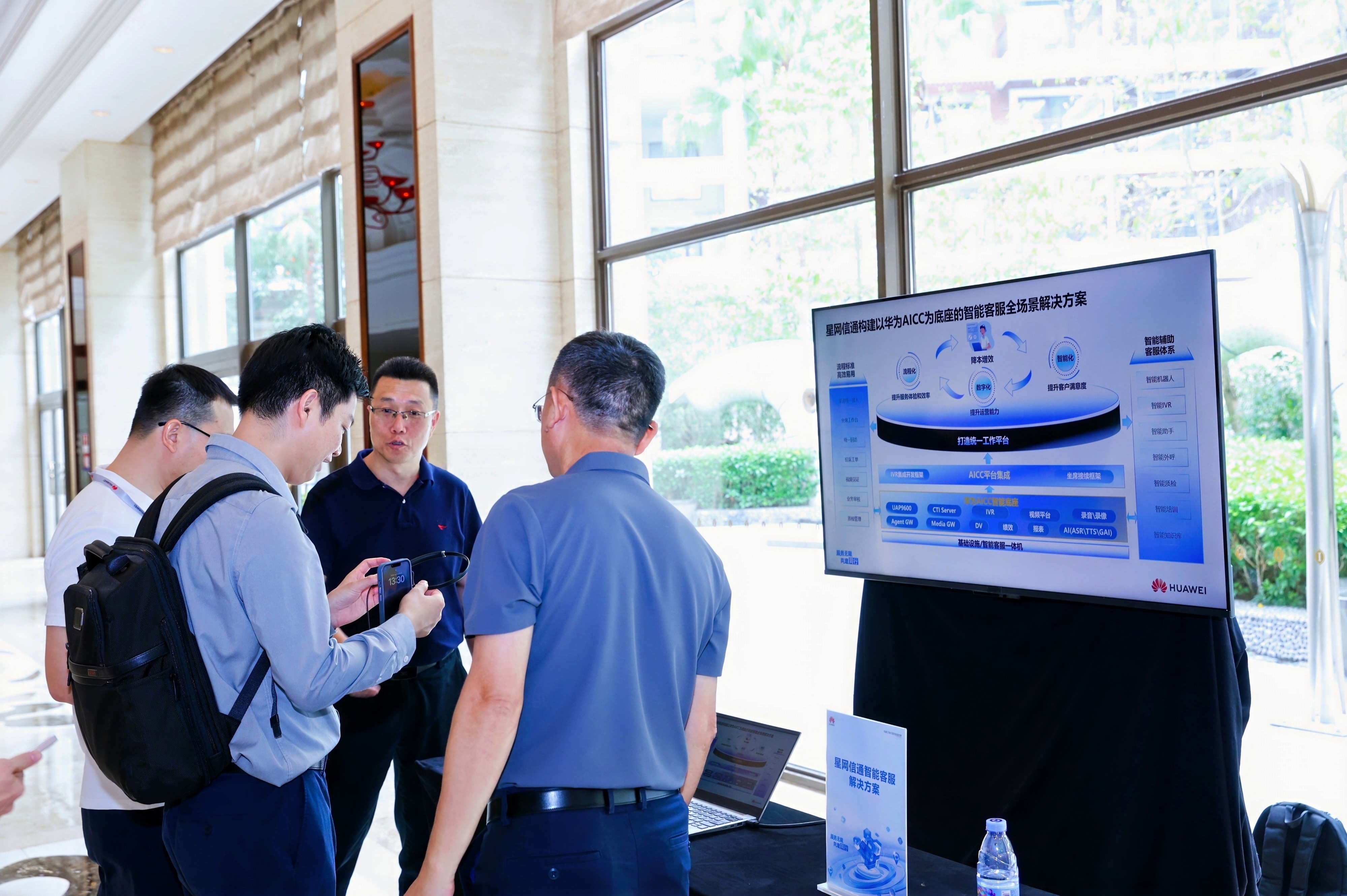 伙伴展臺區,星網信通為來賓詳細介紹了以華為AICC為底座的智能客服全場景解決方案: