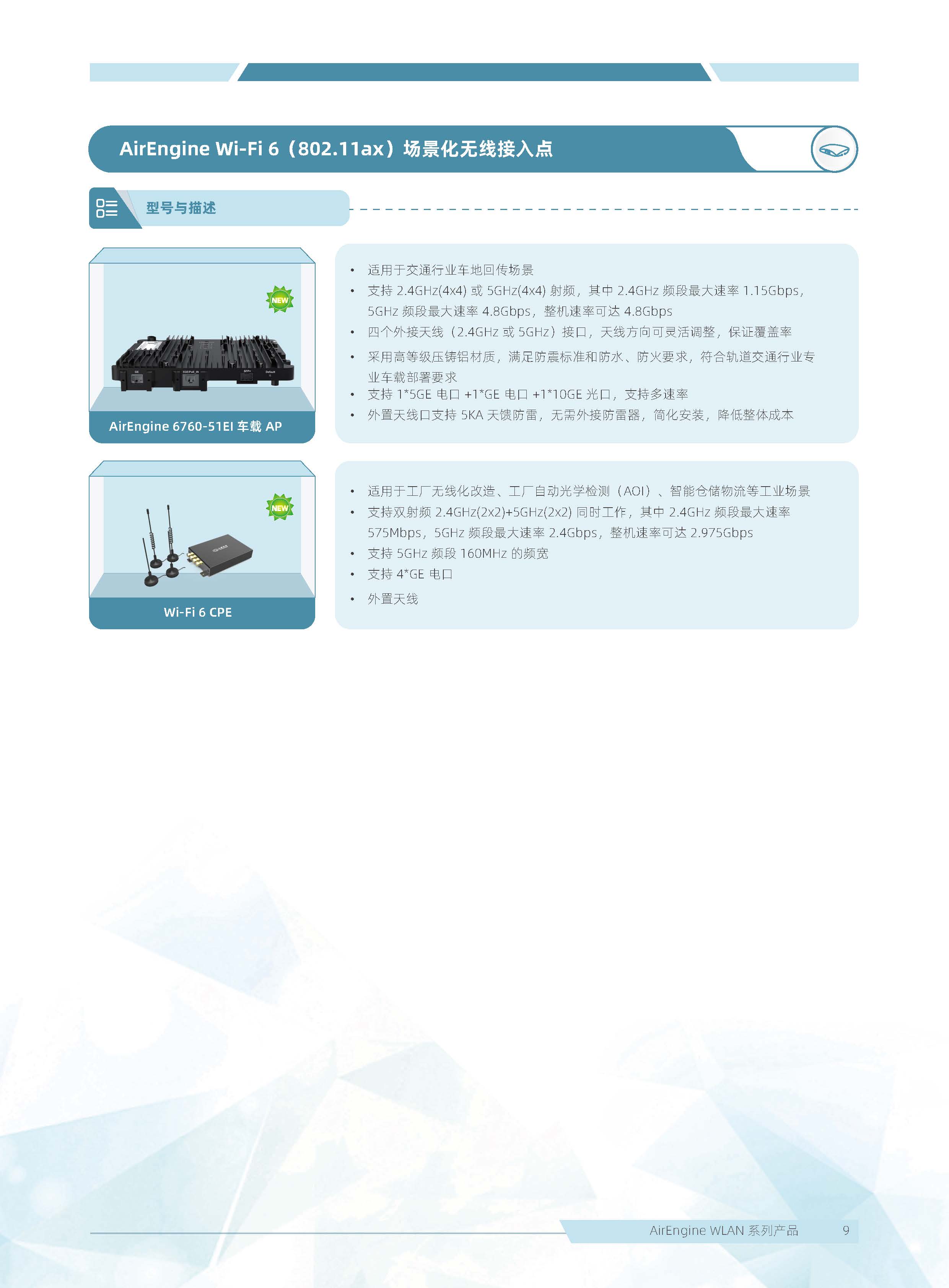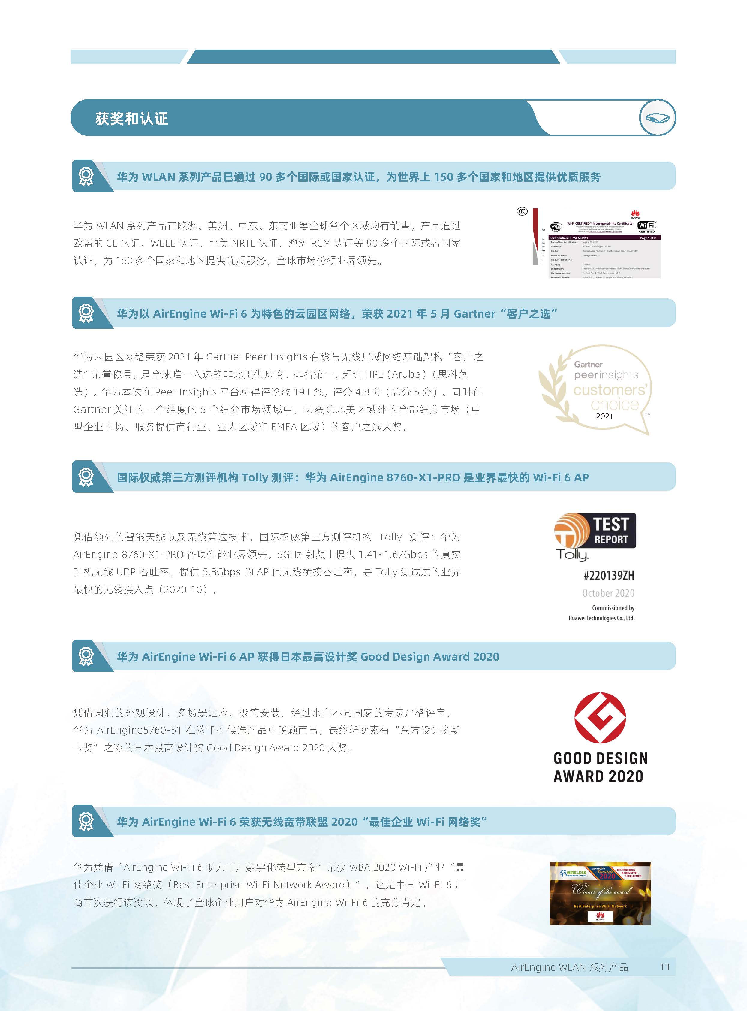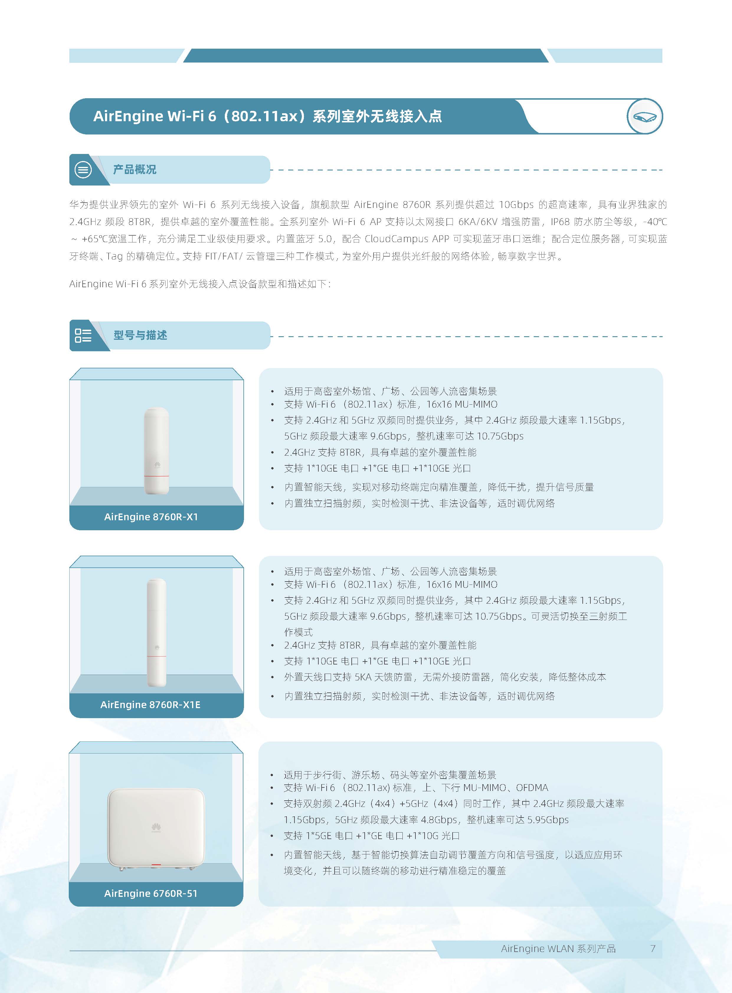 華為 AirEngine Wi-Fi 6 系列無(wú)線(xiàn)局域網(wǎng)產(chǎn)品,構(gòu)建在 Wi-Fi 6 標(biāo)準(zhǔn)之上,在天線(xiàn)技術(shù)、基帶技術(shù)、射頻算法等方面做了顯著創(chuàng)新,全系列新一代室內(nèi)放裝 AP 具有業(yè)界領(lǐng)先的智能天線(xiàn)、二 / 三射頻靈活可切、獨(dú)立射頻掃描、內(nèi)置藍(lán)牙 5.0,內(nèi)置雙 IoT 模塊卡槽、光電混合傳輸接口等領(lǐng)先技術(shù),為企業(yè)客戶(hù)打造極速性能、穩(wěn)定體驗(yàn)、隨時(shí)隨地 100Mbps 的全無(wú)線(xiàn)園區(qū)網(wǎng)絡(luò)